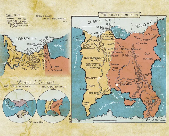 Surgida de la idea de una sociedad en la que nunca hubo una guerra, pero que cambio bastante en la versión final, es un libro bastante recomendable, aunque para quienes les gusta la ciencia-ficción dedicada a explorar culturas alienígenas y y sus diferencias con la sociedad humana. El propio planeta gethen al parecer no tiene un mapa oficial, pero aquí tenemos varios: